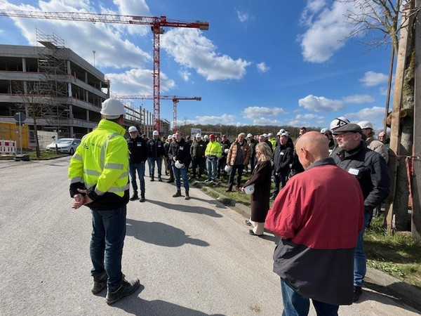Den Auftakt bildete die Besichtigung des zweiten Bauabschnitts der Fraunhofer-Einrichtung „Forschungsfertigung Batteriezelle (FFB)“. Vor Ort erhielten die Teilnehmenden einen umfassenden Eindruck von den Dimensionen und der technischen Komplexität dieses innovativen Projekts. Besonders die Verbindung von Forschung, moderner Bauweise und industrieller Anwendung stieß auf großes Interesse.